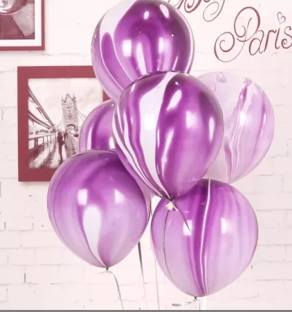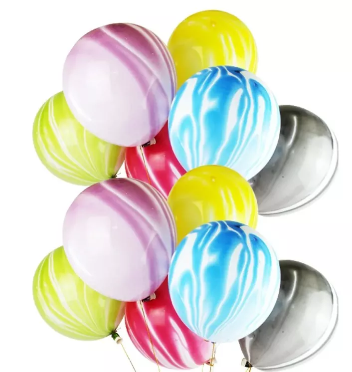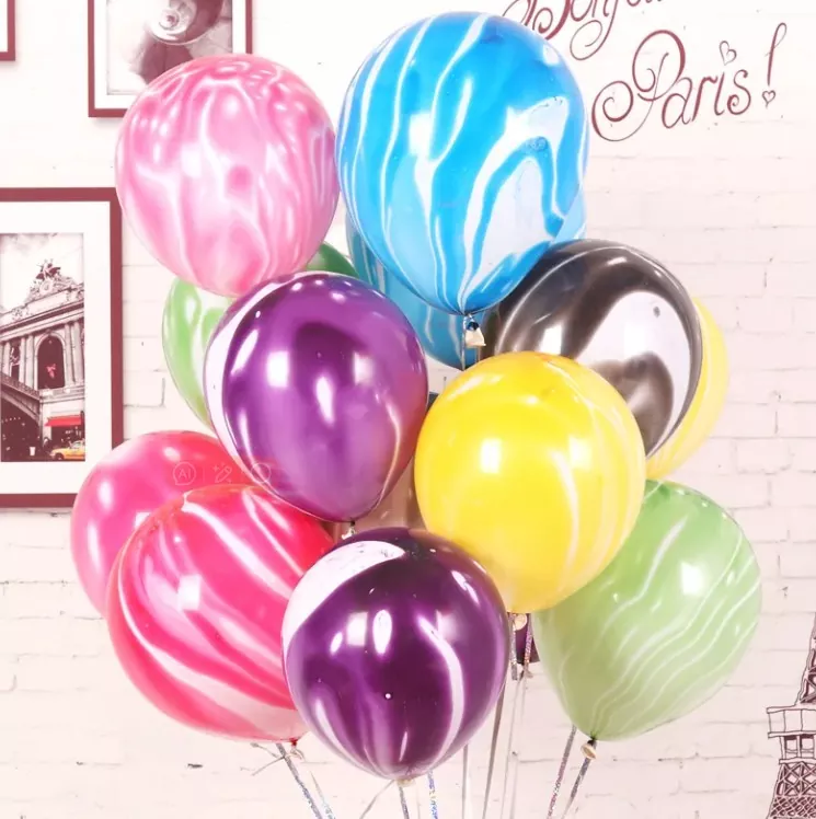 Lassen Sie es mich Freunden vorstellen, die damit nicht vertraut sind. Achatballons sind Latexballons mit natürlichen Marmormustern auf der Oberfläche. Sie sehen so High-End wie echte Achat-Edelsteine aus. Die Muster jedes Ballons sind einzigartig und zeigen einen besonders charmanten Glanz unter dem Licht. Die Waren, die wir diesmal importiert haben, umfassen mehr als ein Dutzend High-End-Farben wie Weinrot, Dunkelgrün, Bernstein, Perlenweiß usw.