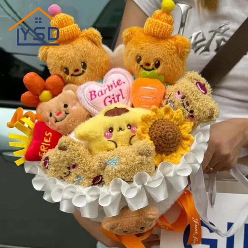Haltbarkeit: Im Vergleich zur kurzen Blütezeit von frischen Blumen können Puppenstraußbuße für lange Zeit aufbewahrt werden, ohne zu verblassen oder sich zu verschlechtern, was sie zu einem geschätzten Postparty-Souvenir oder einer auffälligen Ergänzung zu jedem Alltagsraum macht. Reiche emotionale Kapazität: Plüschspielzeug vermitteln von Natur aus Wärme und Kameradschaft. Wenn Sie sie in einen Blumenstrauß einbeziehen, ist das Geschenk noch nachdenklicher und etwas Besonderes, was es zu einer idealen Möglichkeit macht, dem Empfänger Liebe und gute Wünsche auszudrücken.