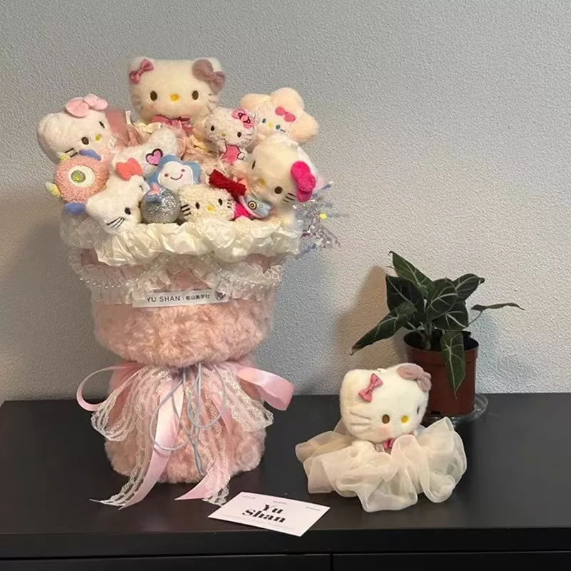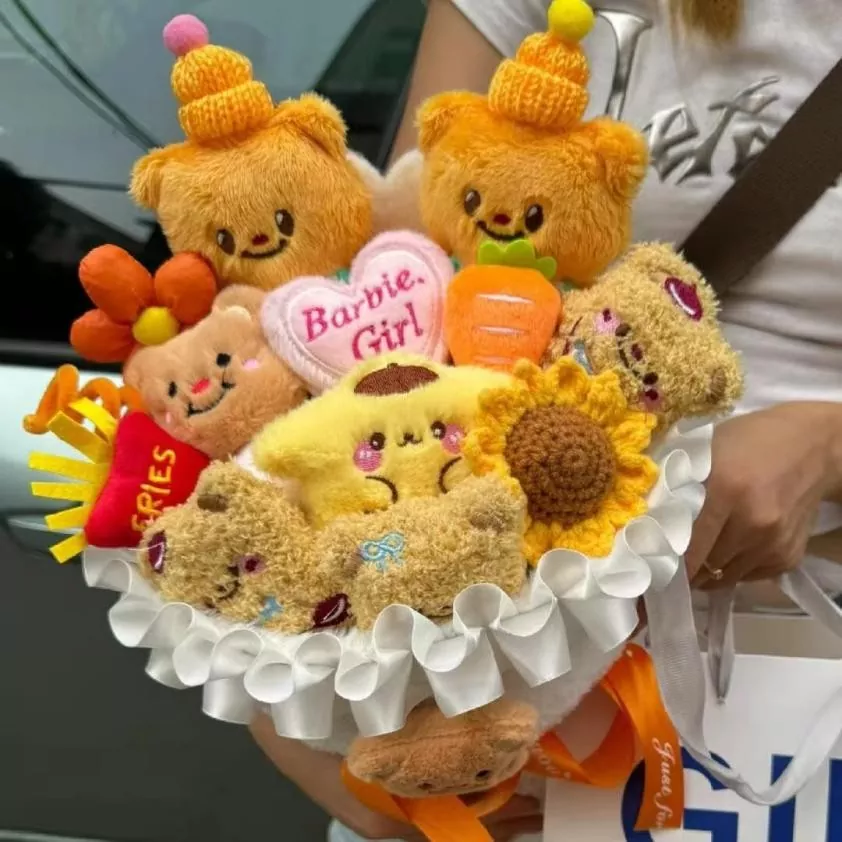 Puppenstärken kombinieren geschickt weiche, kuschelige Plüschpuppen mit traditionellen Blumensträußen. Sie sind keine Blumen, aber sie vermitteln auf kreativere und dauerhaftere Weise Emotionen und Freude und schaffen eine einzigartige Ergänzung zu Partys und Geschenken. Ihr Kernwert besteht darin, das tröstliche Gefühl von Puppen mit dem zeremoniellen Gefühl von Blumensträußen zu verbinden.