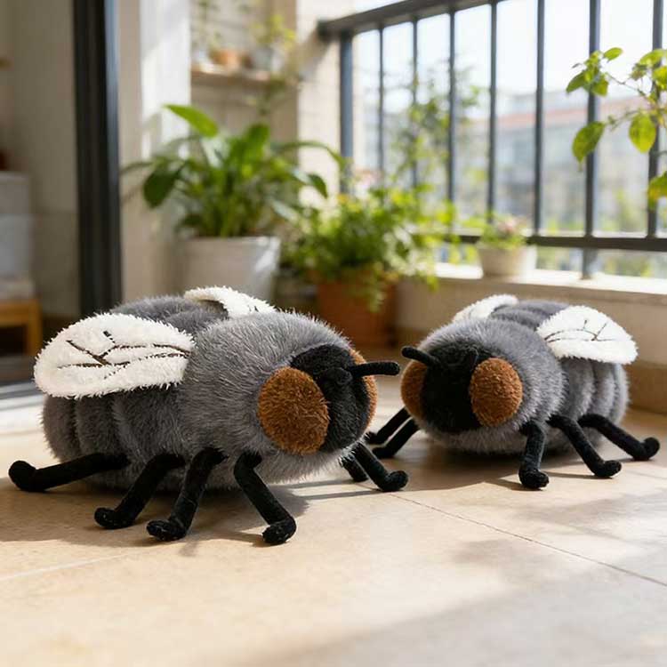 Dieses modische Fliegenplüschtier des Herstellers YSD ist hinsichtlich Aussehen und Größe sorgfältig gestaltet. Es ist in zwei klassischen Farben erhältlich: Die graue Version bildet die natürliche Textur einer Fliege nach und sieht realistisch aus, ohne gruselig zu wirken, während die braune Version ein bezaubernderes Gefühl mit einem sanfteren Farbton vermittelt. Die Größe beträgt einheitlich 23 cm und das Gewicht beträgt nur 0,12 kg, wodurch es leicht und einfach zu tragen ist. Ob als Anhänger an einer Tasche aufgehängt oder als Dekoration auf einem Schreibtisch oder Nachttisch platziert, es nimmt nur sehr wenig Platz ein. Die Flügel sind mit zarten Stickereien dargestellt, der Körper ist gleichmäßig und vollständig gestopft, weich und die Kanten sind sauber vernäht. Insgesamt ist es exquisit und langlebig. Ob im Einzelhandel oder im Großeinkauf, die Kunden werden das Gefühl haben, dass sie ein hervorragendes Preis-Leistungs-Verhältnis erhalten.