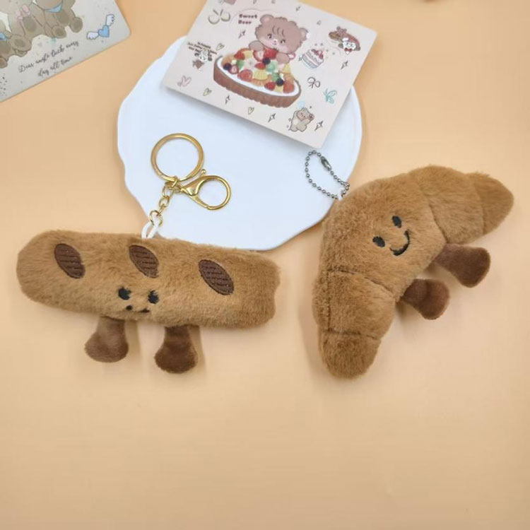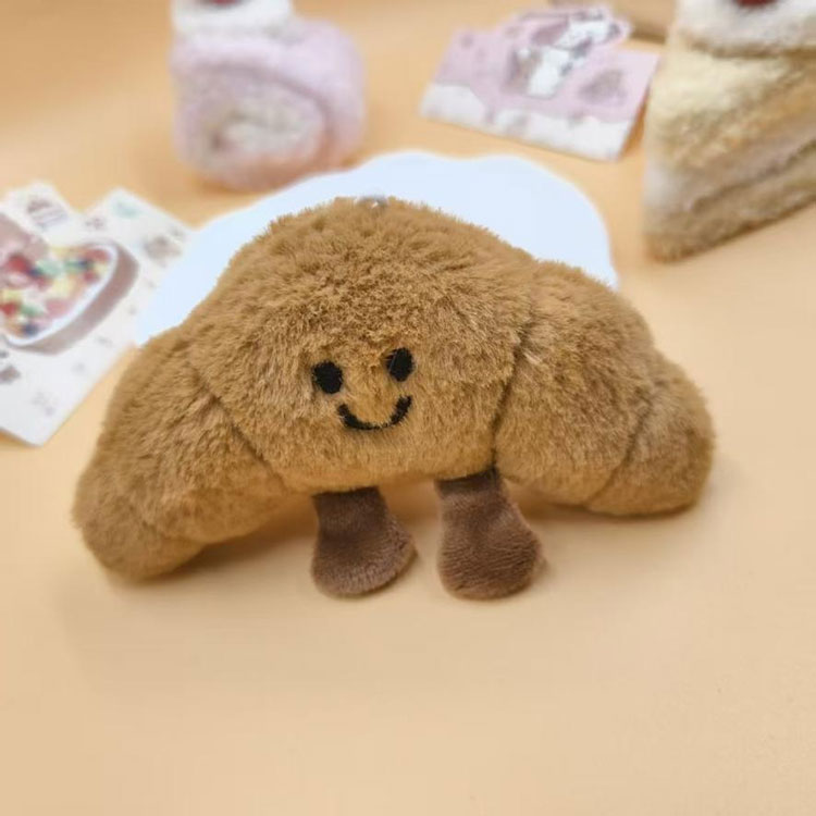 Als Plüschprodukt besteht der hängende Schlüsselanhänger in Form eines pelzigen Brotes aus hochwertigem, kurzem Plüschstoff. Es fühlt sich weich und hautfreundlich an, hat eine dichte und glatte Haaroberfläche und verliert weder Haare noch Pillen. Darüber hinaus verfügt es über eine gute Luftdurchlässigkeit und verursacht bei längerem Hautkontakt keine Beschwerden. Die Innenfüllung besteht aus hochwertiger 7D-Polyesterfaser, die eine hohe Bauschigkeit und gute Elastizität aufweist. Es kann nach dem Zusammendrücken schnell zurückprallen, ohne dass es zu einer Verformung kommt. Noch wichtiger ist, dass alle Stoffe Sicherheitstests bestanden haben, internationale Sicherheitsstandards wie EN71 und ASTM F963 erfüllen, keine schädlichen Bestandteile enthalten und von Erwachsenen und Kindern sicher verwendet werden können. Darüber hinaus ist der Stoff leicht zu reinigen. Kleinere Verschmutzungen können mit einem feuchten Tuch entfernt werden, was für die tägliche Pflege des Verbrauchers praktisch ist und außerdem die Haltbarkeit des Produkts verbessert, sodass Käufer den Verkauf entspannter gestalten können.