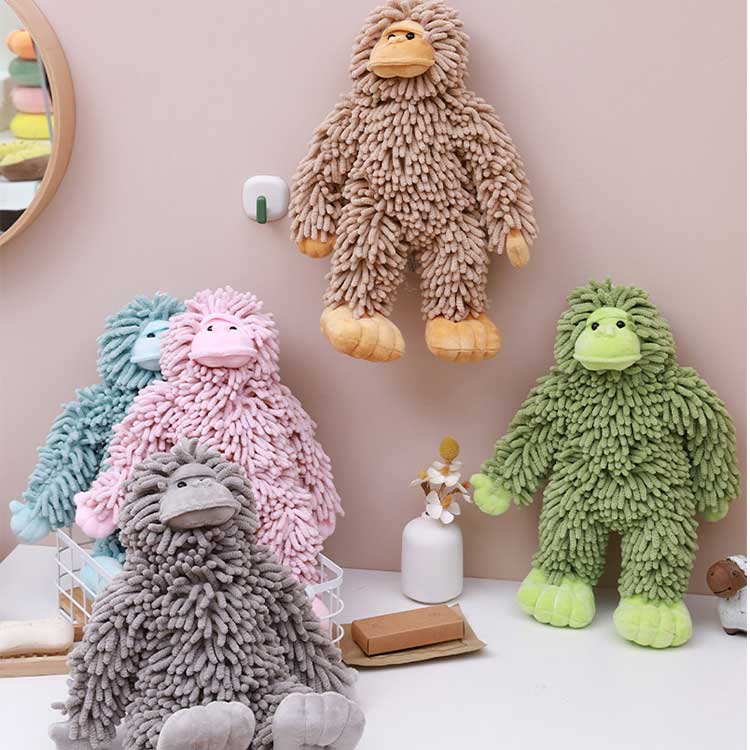 Dieses Gorilla-Plüschtier-Handtuch ist in Bezug auf den Stoff zuverlässig. Wir verwenden hochwertiges, ultraweiches Kristallgewebe, das sich zart und glatt anfühlt, hautfreundlich und nicht reizend ist, selbst für die empfindliche Haut von Kindern. Darüber hinaus verfügt dieser Stoff über eine hervorragende Wasseraufnahme. Beim Abwischen der Hände trocknet es sofort, ohne Wasserflecken zu hinterlassen, was viel besser ist als bei gewöhnlichen Handtüchern. Gleichzeitig weist der Stoff eine gute Verschleißfestigkeit auf. Nach mehreren Wäschen fusselt es nicht, verliert keine Haare und verformt sich nicht und hat eine lange Lebensdauer, sodass die Wiederkaufrate der Kunden natürlich hoch ist. Darüber hinaus hat der Stoff Sicherheitsprüfungen bestanden, ist geruchs- und schadstofffrei und entspricht den nationalen Produktstandards der Klasse A. Sie müssen sich beim Kauf zum Wiederverkauf keine Gedanken über Qualitätsprobleme machen.