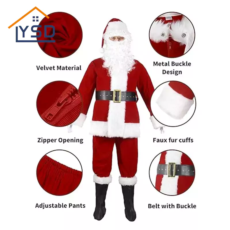 Abgesehen von den Urlaubsveranstaltungen werden die Kostüme von Weihnachtsmannsklaus in Film- und Fernsehshoots, themenbezogenen Auftritten und anderen Umgebungen häufig verwendet. Ihre Haltbarkeit und einfache Reinigbarkeit ermöglichen einen wiederholten Gebrauch und bieten ein hervorragendes Preis -Leistungs -Verhältnis. Als professioneller Anbieter von Weihnachtsfeierdekorationen stellt YSD sicher, dass jedes Santa Claus-Kostüm eine strenge Qualitätsprüfung durchläuft, um sicherzustellen, dass Kunden qualitativ hochwertige Produkte erhalten.
