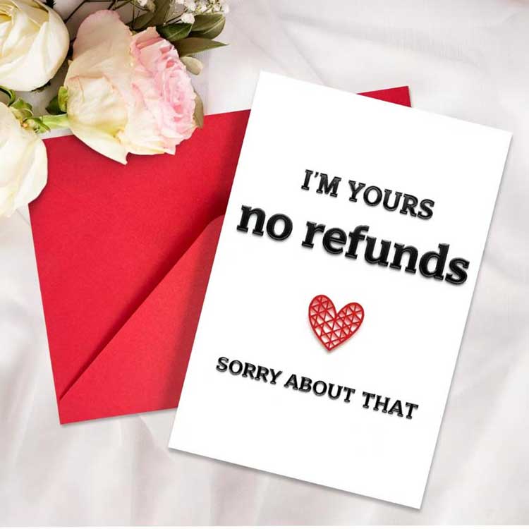 Im Inneren gibt es jede Menge Freiraum für handgeschriebene Kleinigkeiten, oder Kunden können aus unseren vorgedruckten Zeilen auswählen.